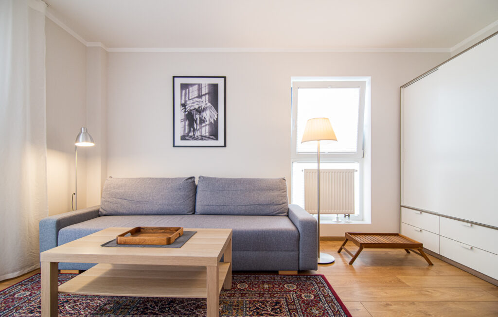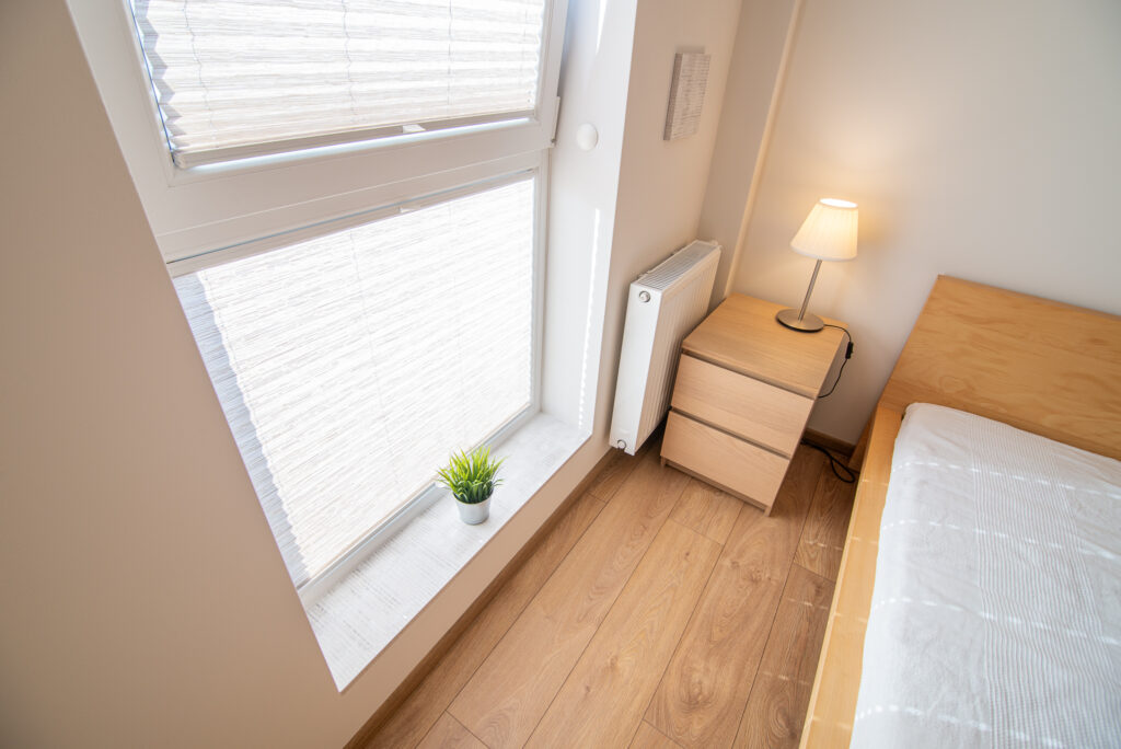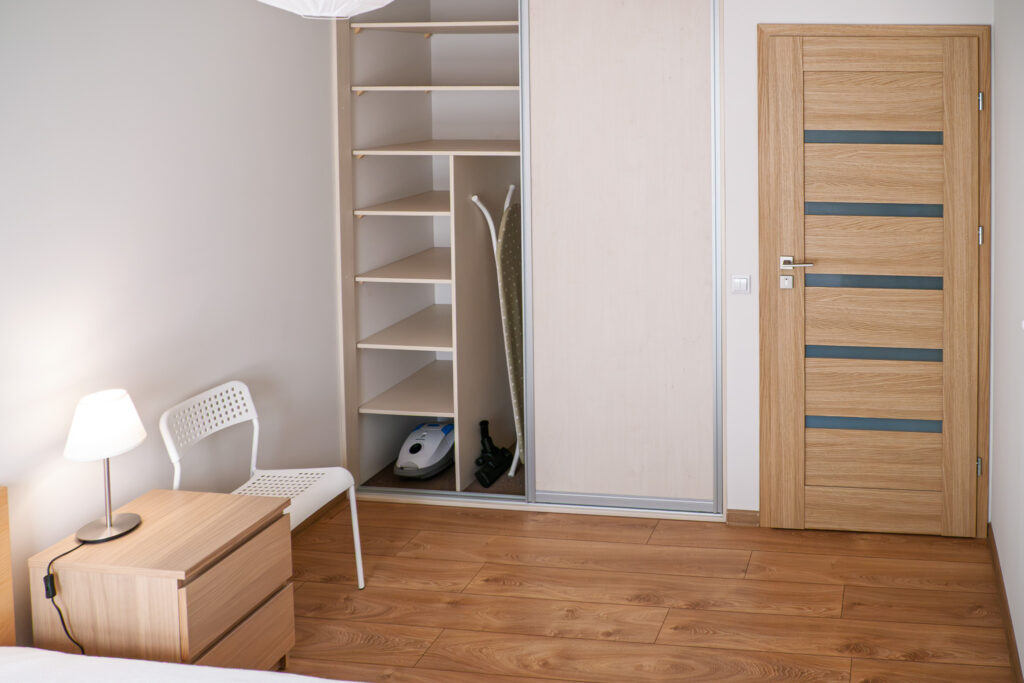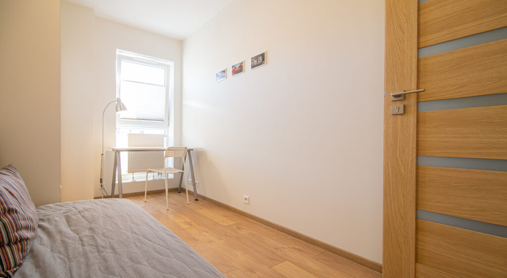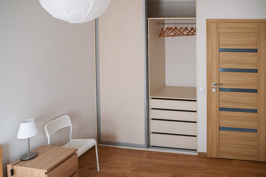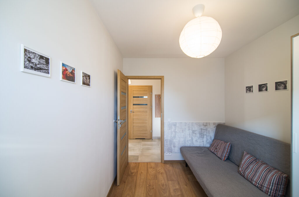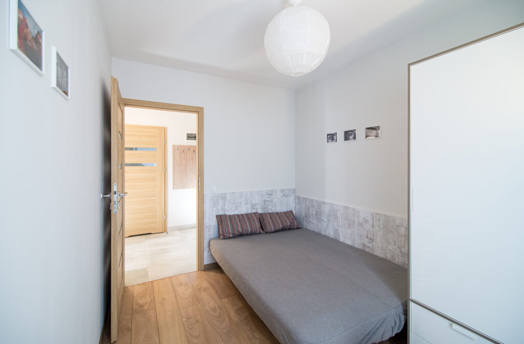 Mniejsza sypialnia (szafa z drzwiami przesuwnymi i funkcją komody – cztery szuflady):