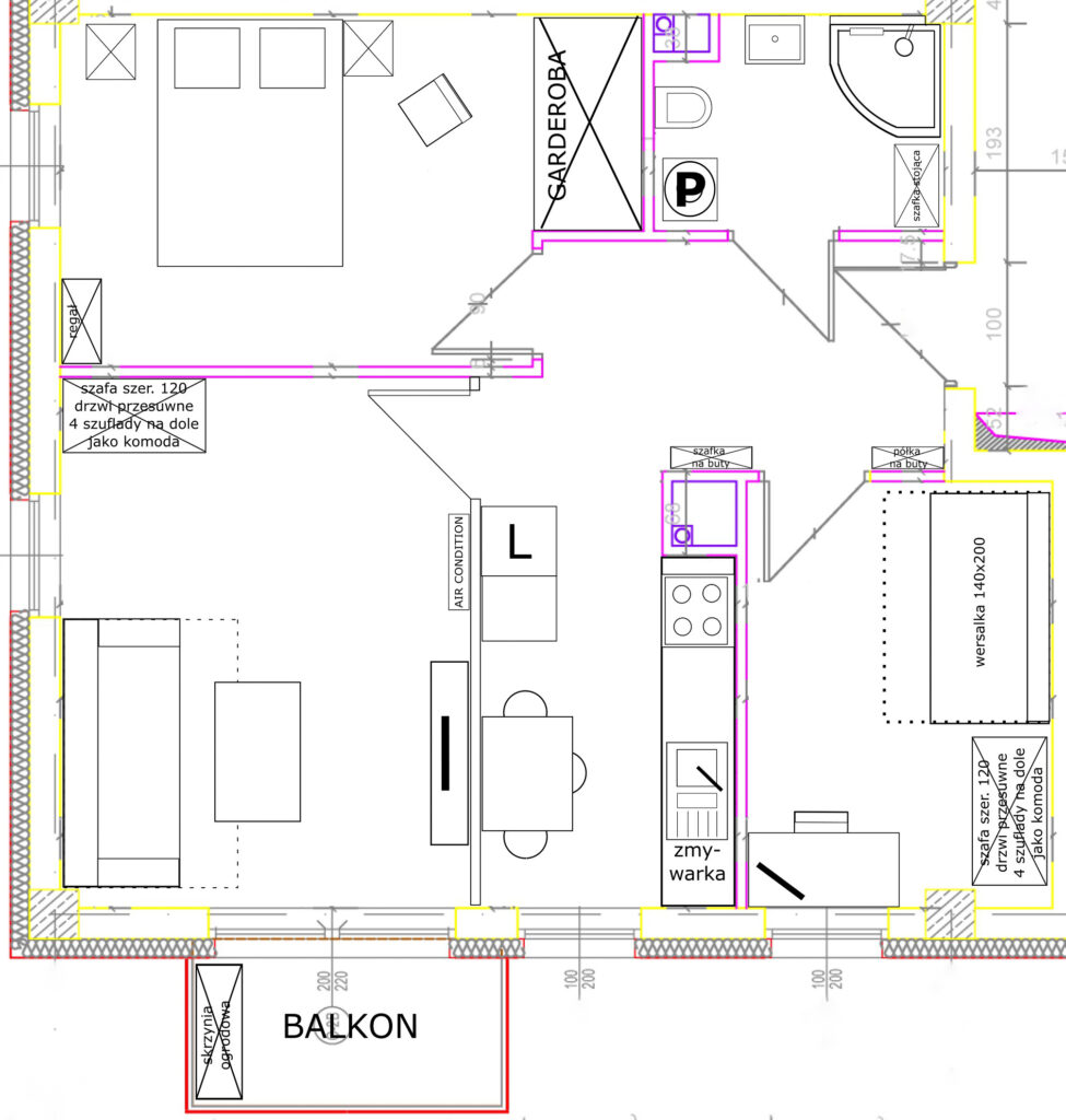Rzut – trzy niezależne pokoje- wariant domyślny: